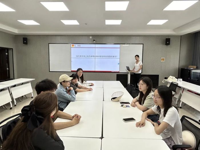 2022级团支部成员们在会前组织自学了《深入学习习近平关于科技创新的重要论述》,并在会上集中学习了党建网发布的《要时不我待推进科技自立自强》一文,团支部书记于娜结合以往特色主题团日活动中的科技先锋模范,围绕“当代青年身上肩负着哪些推动建设科技强国的重任?”这一主题,组织团员和青年展开讨论,进一步引导支部团员明确肩负的重任,鼓励团员增强自主创新能力,争取在推动科技强国建设、实现高水平科技自立自强中争当主力军。