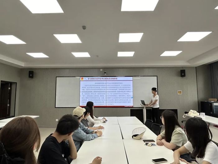 2023级团支部书记张聪带领全体团员开展“倡导绿色发展——美丽中国青春行”主题团日活动。张聪详细介绍了习近平总书记关于生态文明建设的重要论述,她认为,生态安全与人民群众的生存和健康息息相关,与经济发展和社会稳定密切相关。习近平总书记高度重视生态安全,强调“筑牢国家生态安全屏障”“确保绿水青山常在、各类自然生态系统安全稳定”“要守牢美丽中国建设安全底线”。随后,与会团员共同观看生态环境部发布的2024年“全国低碳日”主题宣传片。在青年大讨论环节,团员代表朱亦婷认为,作为新时代的研究生,应积极响应国家号召,将绿色发展理念融入学习和生活的各个方面,从点滴小事做起,维护好校园环境。通过本次活动,团员们进一步认识到生态文明建设的重要性,坚定在日常生活中积极践行绿色理念,投身于国家绿色发展事业中去的坚定信念。