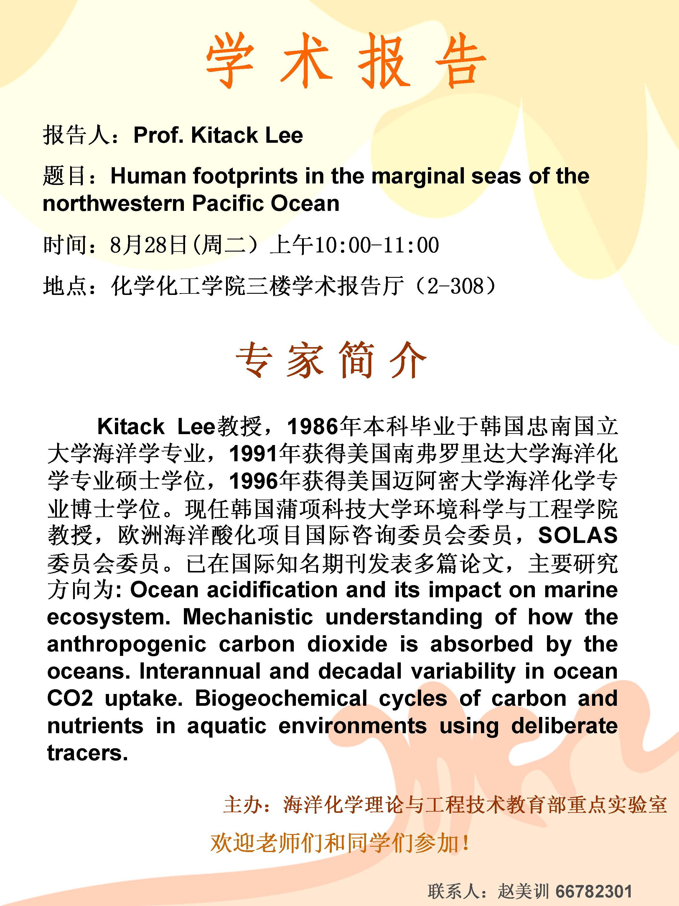 8月28日韩国蒲项科技大学Kitack Lee教授讲座