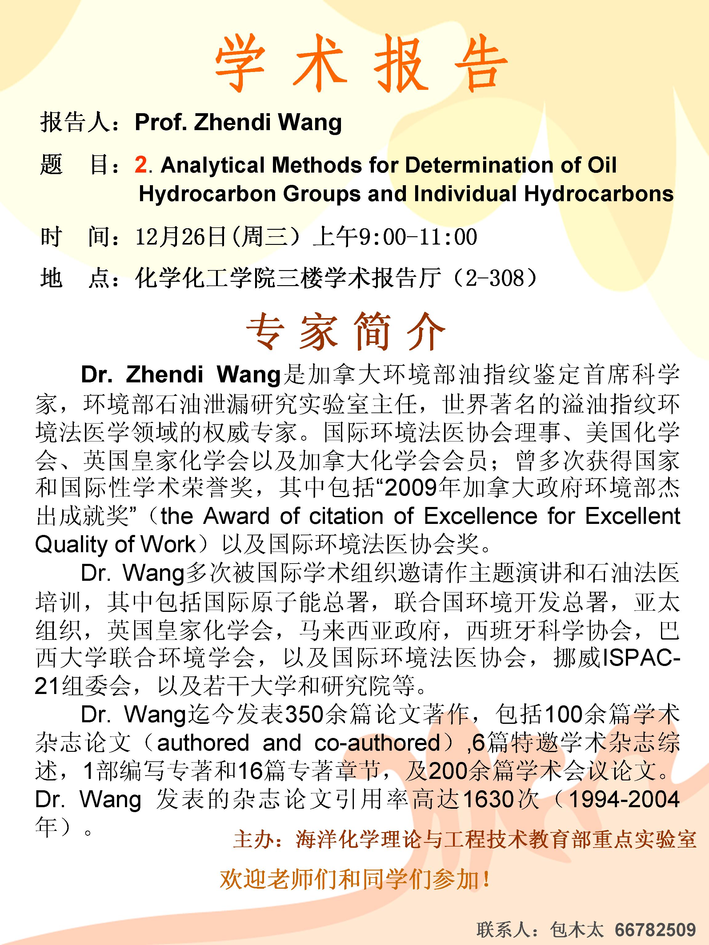 12月26日加拿大环境部溢油研究实验室首席科学家Zhendi Wang报告