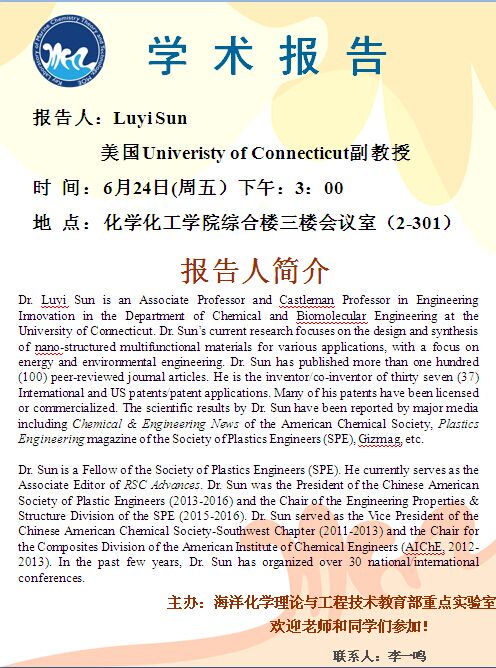 6月24日美国康涅狄格州立大学Luyi Sun副教授讲座
