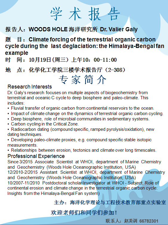 10月19日美国Woods Hole海洋研究所Valier Galy博士报告