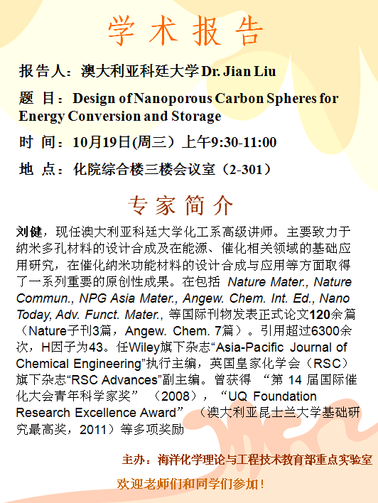 10月19日澳大利大科廷大学刘健博士讲座