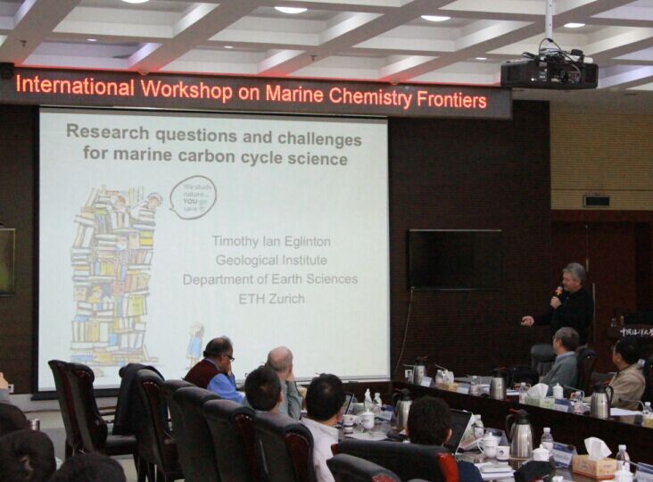 本次研讨会由开云电竞网址赵美训教授和瑞士联邦理工学院Timothy I. Eglinton教授共同组织发起,由国家自然科学基金创新研究群体项目“海洋有机生物地球化学(41521064)”、高等学校学科创新引智计划“海洋化学”创新引智基地(B13030)与海洋化学理论与工程技术教育部重点实验室、青岛海洋科学与技术国家实验室共同资助。会议邀请了来自德国莱布尼茨热带海洋生态中心前主任Venu Ittekkot教授、美国华盛顿大学的Julian Sachs教授、美国佐治亚大学孙铭一教授、法国西布列塔尼大学Paul Treguer教授、美国加州大学圣芭芭拉分校David Valentine教授、韩国首尔大学Guebuem Kim教授、美国威斯康辛大学郭劳动教授等多位国外大学和研究机构的专家学者。创新研究群体项目组、海化重点实验室的近百名师生参加了研讨会。
