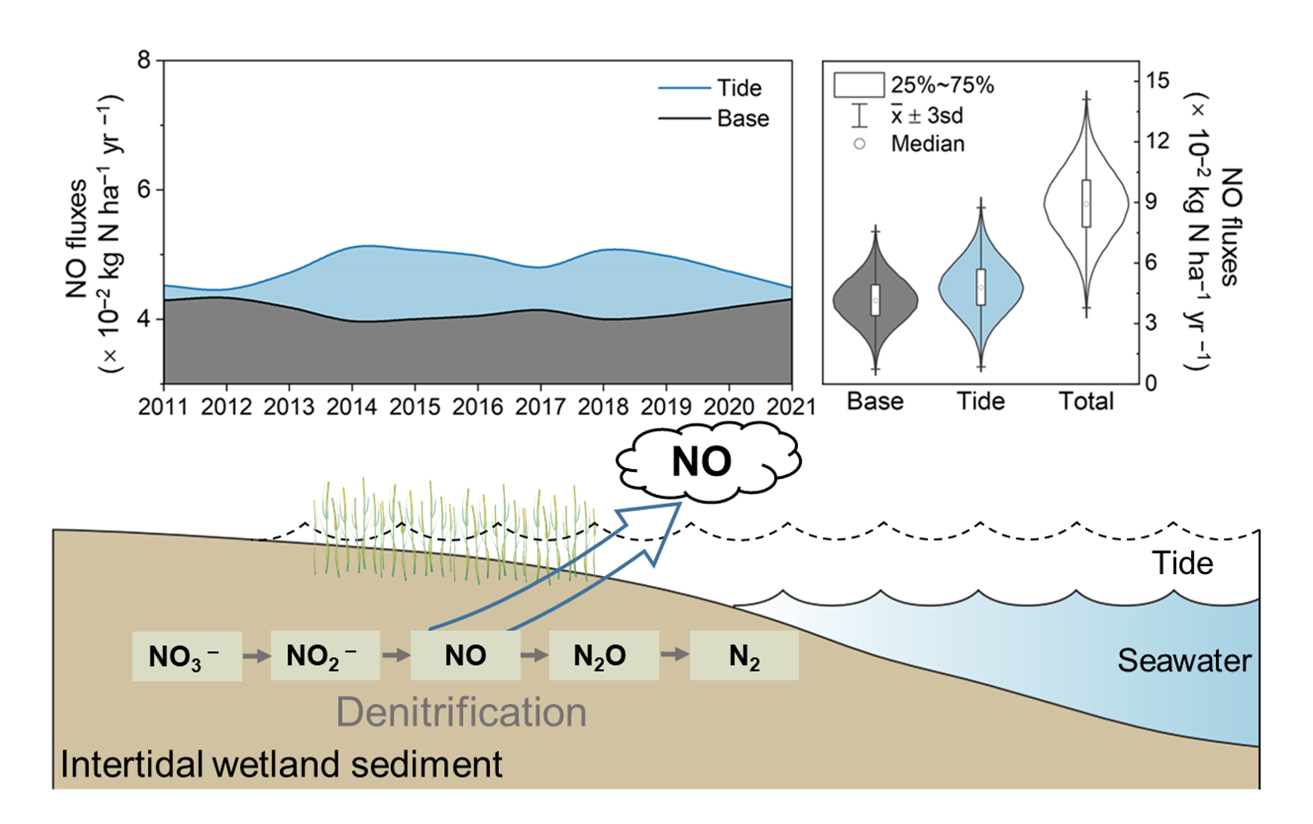 近日,开云电竞网址深海圈层与地球系统前沿科学中心、海洋化学理论与工程技术教育部重点实验室在环境领域顶尖学术期刊Water Research发表了题为“Driving force of tidal pulses on denitrifiers-dominated nitrogen oxide emissions from intertidal wetland sediments”(潮汐脉冲对潮间带湿地沉积物中以反硝化细菌主导的氮氧化物排放的驱动)的文章,在滨海湿地氮氧化物(NOx)生物地球化学循环研究领域取得新进展(图1)。论文第一作者为2021级海洋化学专业博士研究生贡江琛,通讯作者为刘春颖教授和杨桂朋教授。