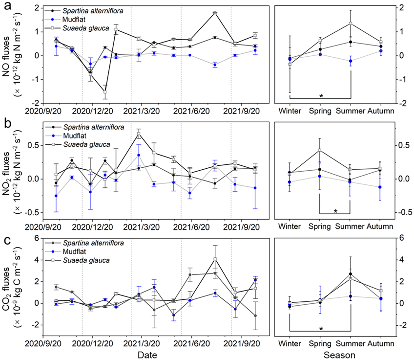 图1 潮间带湿地沉积物的氮氧化物释放