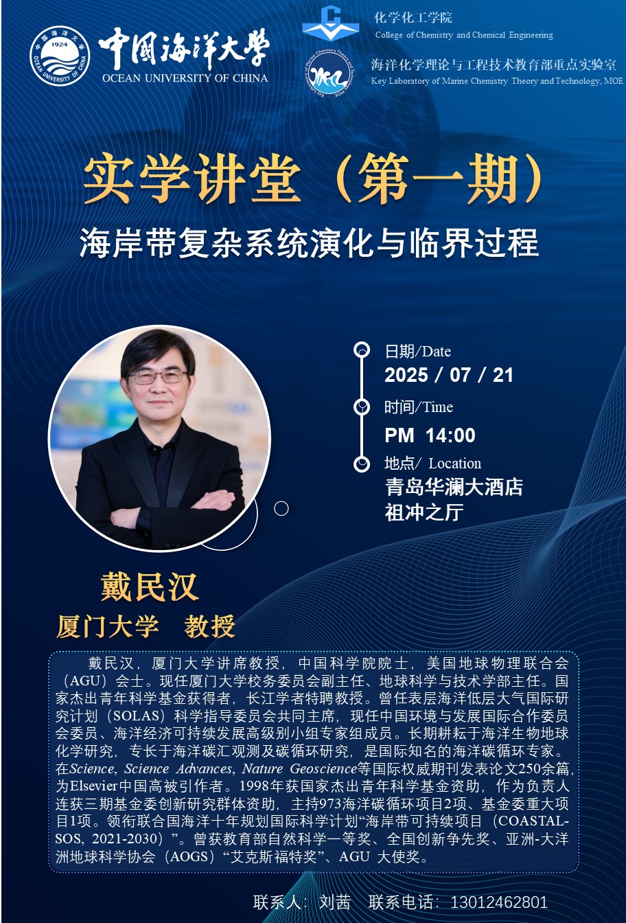 【实学讲堂】第1期-戴民汉:海岸带复杂系统演化与临界过程