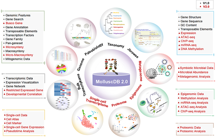 图3 MolluscDB 2.0数据库架构和多组学功能模块概览