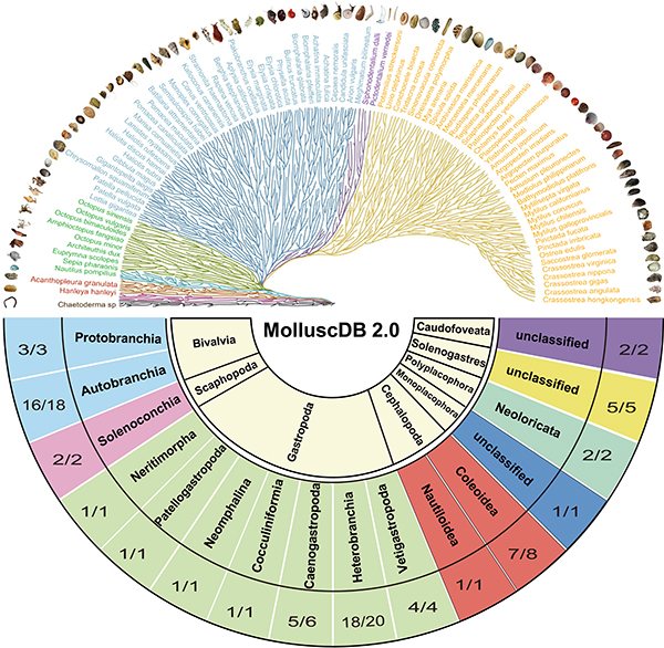 图2 MolluscDB 2.0数据库物种分类和覆盖情况总览