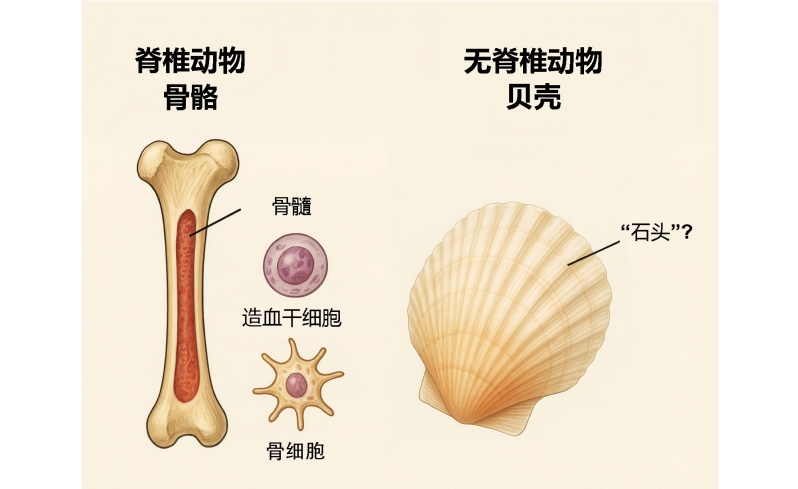 图1 脊椎动物具有造血功能的内骨骼与无脊椎动物的外骨骼