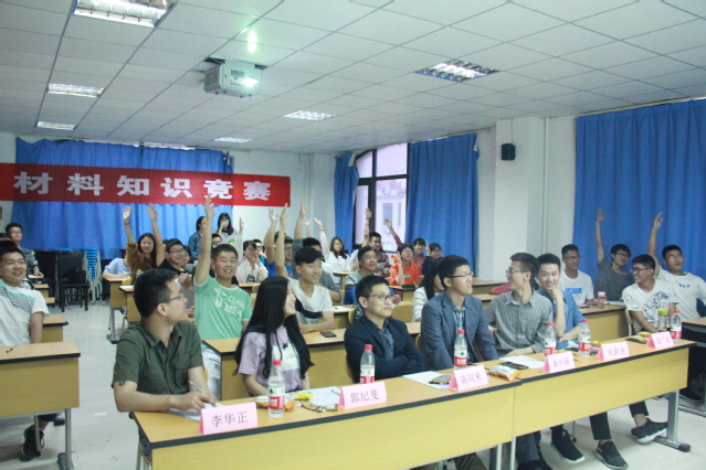 本站讯:5月27日晚,材料学院在材料楼513举办了“材料知识竞赛”,出席本次活动的嘉宾有2016级高分子材料与工程班班主任崔中雨老师、2017级材料科学与工程班班主任陈同来老师、辅导员张蔚圣老师、辅导员郭纪斐老师以及竞赛题库设计者李华正和赵广志同学,本次竞赛共有16支参赛队伍。