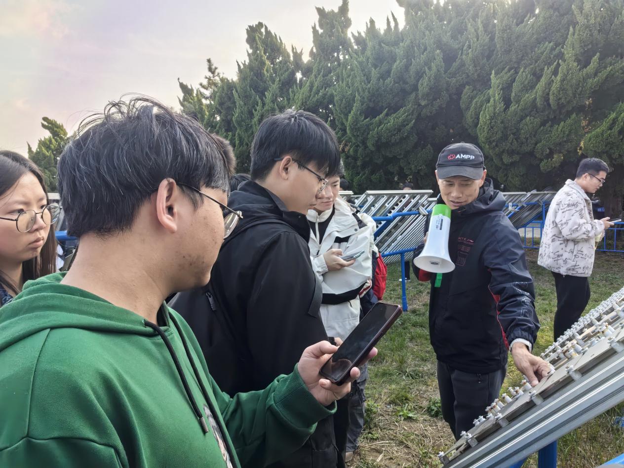 下午两点,同学们在高荣杰的组织带领下统一乘坐大巴车抵达教学现场。首先,同学们来到海水腐蚀试验场观察了飞溅区、潮差区和全浸区试样的腐蚀状态。随后,高荣杰带领大家来到大气腐蚀试验场学习大气环境下试样的腐蚀状态,对不同试样的腐蚀情况及内在机理进行了详细讲述。学习现场,同学们积极与老师交流互动,勇于提出自己的疑问,在高荣杰细致耐心的解答下,大家纷纷表示此次现场教学活动让自己收获满满。学习结束后,同学们统一乘坐大巴车安全返回校园。