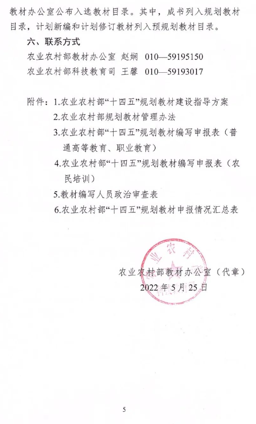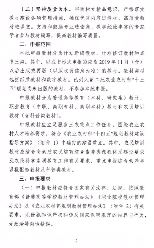 转发农业农村部《关于组织开展首批农业农村部“十四五”规划教材申报工作的通知》