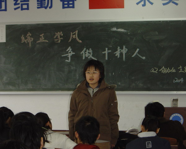 经校团委批准,作为全校唯一试点,工程学院团总支在全院团员青年中开展的团员先进性教育活动开始。图为自动化02级在开展“保持先进性,争做十种人”的主题团日活动。
