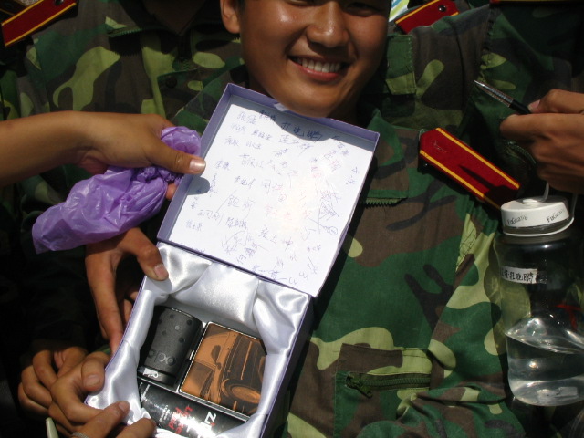 04级通信工程的同学凑钱为教官买来名牌火机钱包,多希望教官能收下.