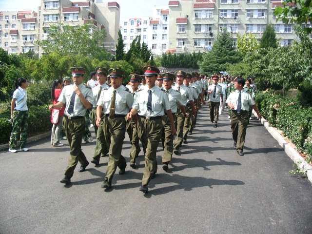 唱着嘹亮的军歌,教官终于出现在我们等待的视线里。