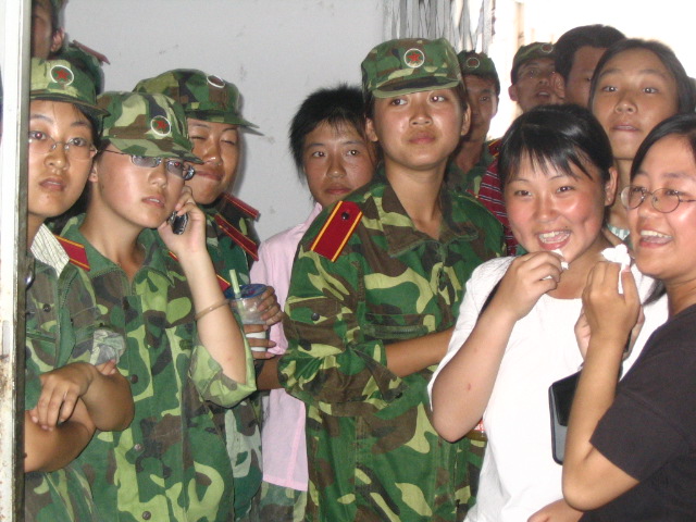 关闭的餐厅门,挡不住我们热切的期盼,只想再看教官一眼。