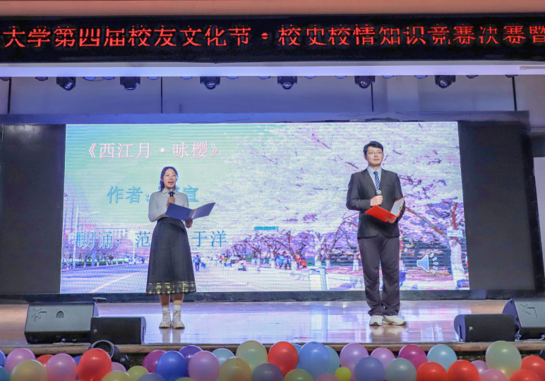 闭幕式将文化作品征集活动中的优秀作品进行了展示,由同学们带来了诗歌朗诵《西江月·咏樱》九首,以及第四届校友文化节主题曲《归海》,将海大学子对母校深沉的爱恋娓娓道来。