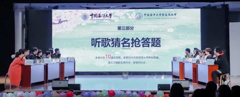 首先进行的是“海大知多少”校史校情知识竞赛决赛,此次校史校情知识竞赛共有6支队伍突出重围,进入决赛。本次决赛除了必答题、选答题、风险抢答题等经典环节外,还增设了“听歌猜名”、“视图抢答”等环节。“听歌猜名”环节选取了《樱海》《拥抱蔚蓝拥抱你》《子曰》等10首校友原创歌曲,展现了海大校友的艺术才华和对母校的眷恋之情;在“视图抢答”环节,题目设计包含了开云电竞网址发展变迁的七个时期的校园风貌,回顾了海大校友付国豪矢志不渝、爱党爱国的高尚情操,展现了知名校友张娟娟在射箭项目上勇夺奥运冠军、为国争光的精彩画面。