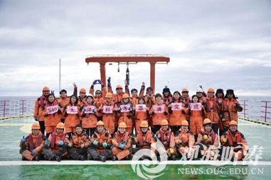参加第40次南极科考的海大师生合影(“雪龙2”号)