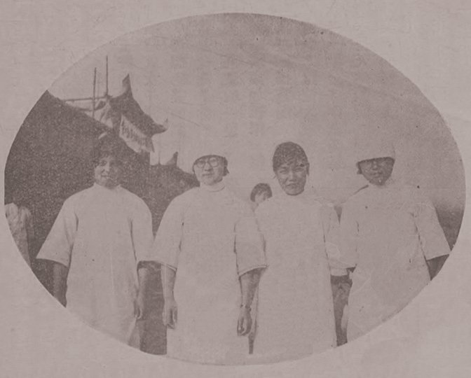 1929年学校运动会上参加掷铁球项目的女生运动员
