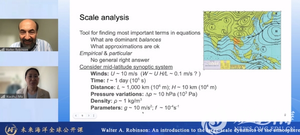 本站讯 近日,应未来海洋学院院长李建平教授、导师马晓慧教授联合邀请,美国气象学会会士、美国北卡罗来纳州立大学Walter A. Robinson教授主讲“全球海洋公开课”,与未来海洋学院导师马晓慧教授联合讲授“Midlatitude Atmospheric Dynamics(中纬度大气动力学)”系列课程。本次课程自5月7日开始,至5月16日结束。