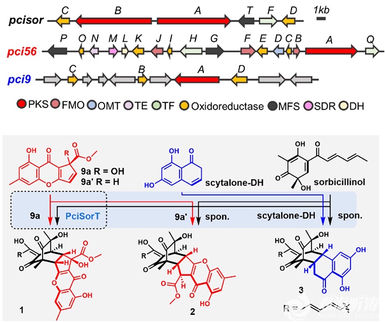 图1:多条基因簇串扰生成杂合新骨架天然产物