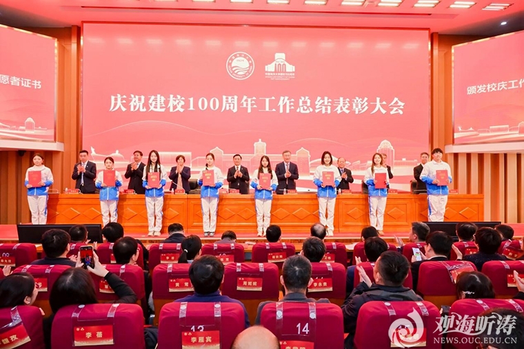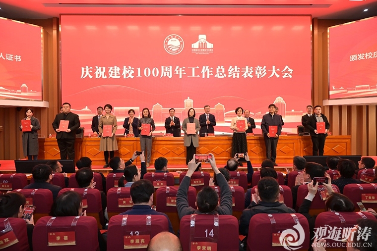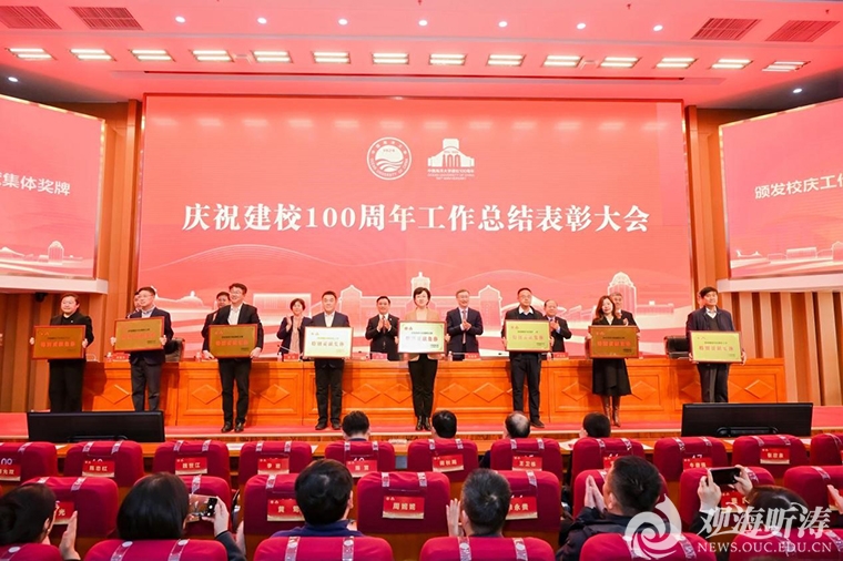 本站讯 12月26日,开云电竞网址庆祝建校100周年工作总结表彰大会在崂山校区海洋科技楼国际报告厅隆重举行。学校党委书记田辉出席会议并讲话,校长张峻峰总结庆祝建校100周年工作,党委常务副书记张静主持会议,党委副书记卢光志,党委副书记、纪委书记杨茂椿,副校长刘勇、范其伟、林旭升出席会议。