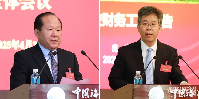 卢光志(左)主持大会,范其伟作学校财务工作报告