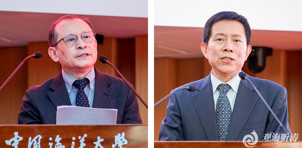 左:行远书院原院长朱自强致辞;右:修斌院长作书院十周年工作报告
