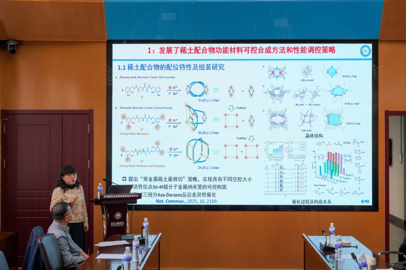 唐瑜教授在报告中系统介绍了稀土研究的意义、稀土配合物的重要性、稀土配合物功能材料可控合成方法和性能调控策略、稀土配合物在光转换材料及器件中的创新应用、基础研究成果的应用转化等。在互动交流环节,与会师生踊跃积极提问,就如何从基础研究向应用转化、限域效应、稀土高熵合金的性能等问题与唐瑜教授展开了深入交流和热烈讨论。