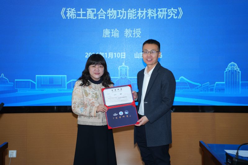座谈交流结束后,化学化工学院李召斌书记向唐瑜教授颁发了“实学讲堂”证书。