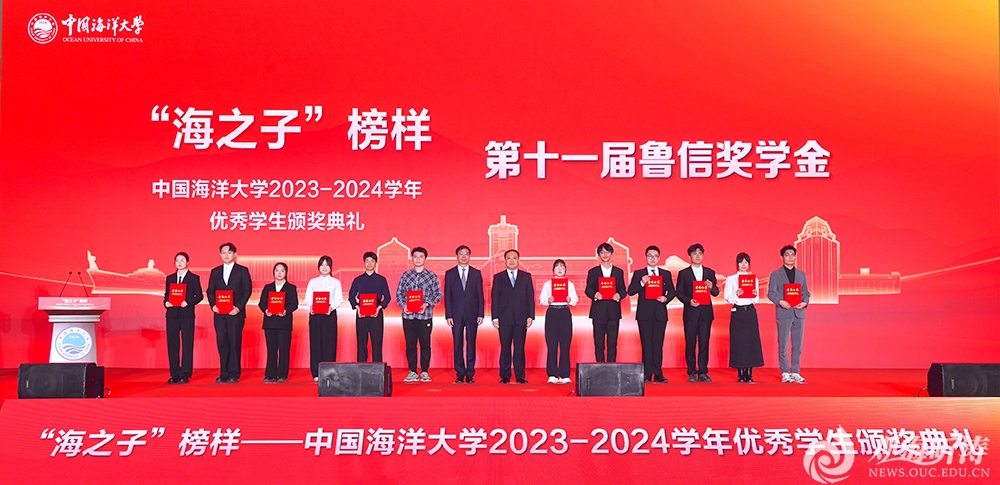 校设奖学金获得者代表、海洋与大气学院葛子涵同学,社会捐赠奖学金获得者代表、文学与新闻传播学院韩梦洁同学,先进班集体标兵获奖班级代表、信息科学与工程学部王骏杰、王小涵同学,海洋织绿创新创业团队成员张彦浩同学,文苑奖学金获奖代表、食品科学与工程学院梁钰同学先后分享了自己的成长感悟与求学故事。