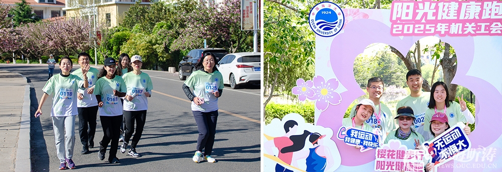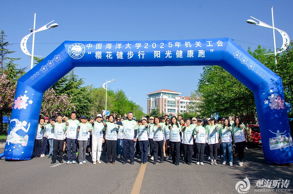 在樱花健步行活动中,400多名机关教职工迈着轻松矫健的步伐,徜徉在双樱盛放的海大园中。在健步行的行进路线上,还设置了校史校情知识考题,进一步强化了机关教职工知校、爱校、荣校的使命意识和责任担当。为实现跨校区全员共同参与,健步行活动在学校崂山、鱼山、浮山和西海岸4个校区同步举行。