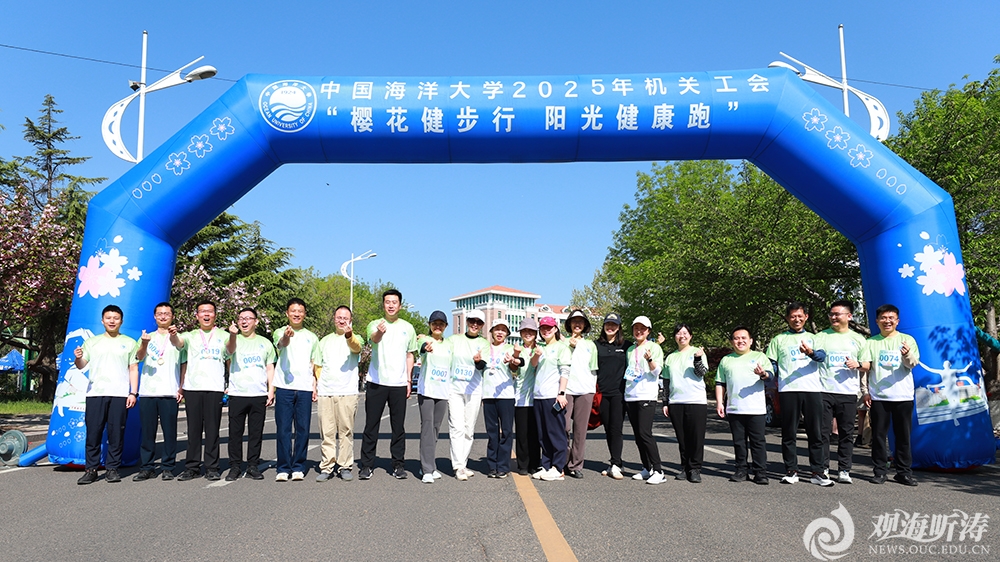 本站讯 四月的海大园,樱花盛放,生机盎然。4月25日,2025年机关教职工“樱花健步行 阳光健康跑”暨校史校情知识答题活动在崂山校区举行。校长张峻峰,党委常务副书记张静,党委副书记卢光志,党委副书记、纪委书记杨茂椿,党委常委、副校长王雪鹏参加活动。张峻峰为阳光健康跑活动开跑鸣枪发令。