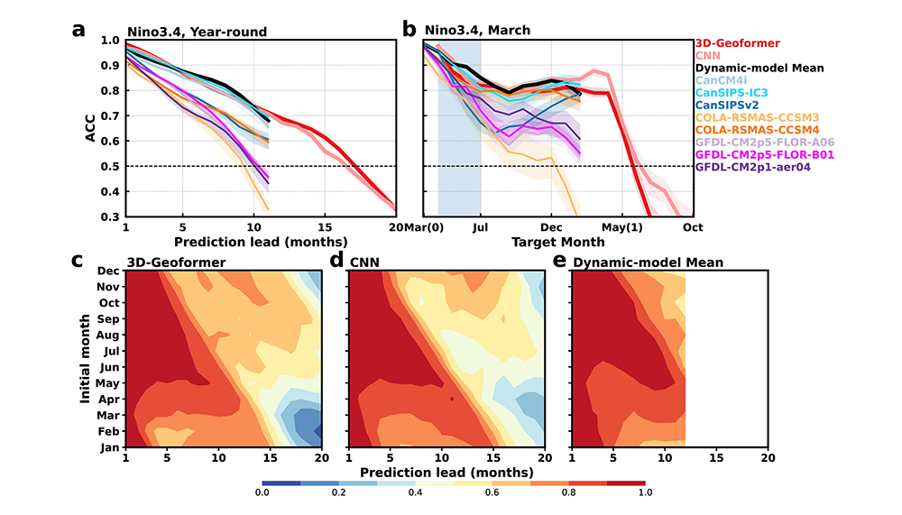 上述工作通过整合DL模型与动力学模式各自的独特优势,显著提高了ENSO预报能力,为气候预报研究开辟了新途径。通过DL模型和动力学模式的不断改进与完善从而获得更准确、更可靠的ENSO预报,这也为应对气候变化挑战提供了有力支持。研究工作得到了国家自然科学基金、国家重点研发计划、海南省科技专项基金和山东省自然科学基金等项目的共同资助。