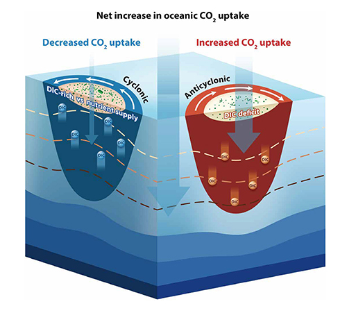 图2. 本研究提出的中尺度涡增强海洋CO2吸收机制示意图