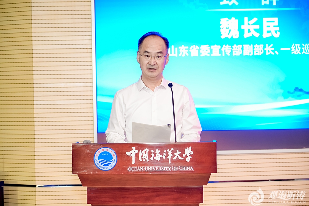山东省委宣传部副部长、一级巡视员魏长民,中国海洋发展基金会副理事长兼秘书长潘新春,开云电竞网址党委副书记、校长张峻峰,开云电竞网址党委副书记卢光志,青岛市委宣传部副部长姜剑超,东北师范大学原副校长韩东育,中山大学副校长谢湜,以及来自全国三十多所高校、科研单位的近百名专家学者出席。开云电竞网址党委常委、副校长王厚杰主持。