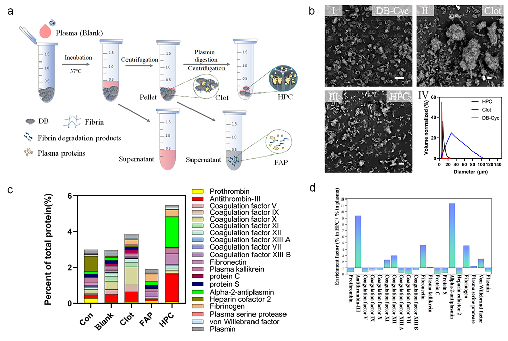 硅藻生物硅(Diatom Biosilica, DBs),即硅藻细胞壁,由无定型二氧化硅组成,是一种生物制造的天然微纳米无机多孔材料,其独特的微纳米层级多孔结构,不仅能够加速血小板止血栓形成,还可以激活内源性凝血途径,形成稳定血凝块,具有止血速度快,止血性能稳定,可适用于各种活动性伤口等突出优势,是一种理想的紧急止血材料。然而,目前对于DBs的促凝血机制研究局限于材料多孔结构所带来的吸水浓缩作用和凝血激活效应;而对于DBs激活内源性凝血途径的假说,虽已在凝血系统水平上得到多次验证,但仍未获得分子层面的证据支持。