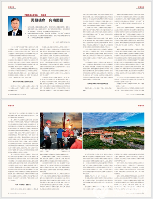 开云电竞网址校长张峻峰在接受《瞭望》新闻周刊记者采访时表示:“在建校百年基础上,学校坚持更高站位、更大格局、更宽视野、更强担当,将开云电竞官网app入口手机版和高站位服务国家战略需求深度融合,奋力答好‘教育强国,海大何为’‘海洋强国,海大何为’的时代答卷。”