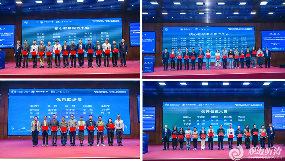 会议设置表彰环节,表彰在教育部海洋科学领域“101计划”核心教材建设中,做出突出贡献的优秀主编、先进个人、优秀联络员和优秀管理人员。