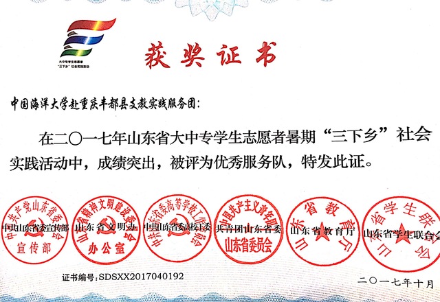 水产学院2017暑期三下乡项目荣获省级奖项
