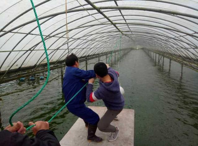 趁着夜色,伴着幽暗的灯光,一个人独坐投喂台,看着水面粼粼波光微烁,望着棚中雾气蒸腾缭绕,倾听水花搅动的节律。这可能就是水产人的浪漫。