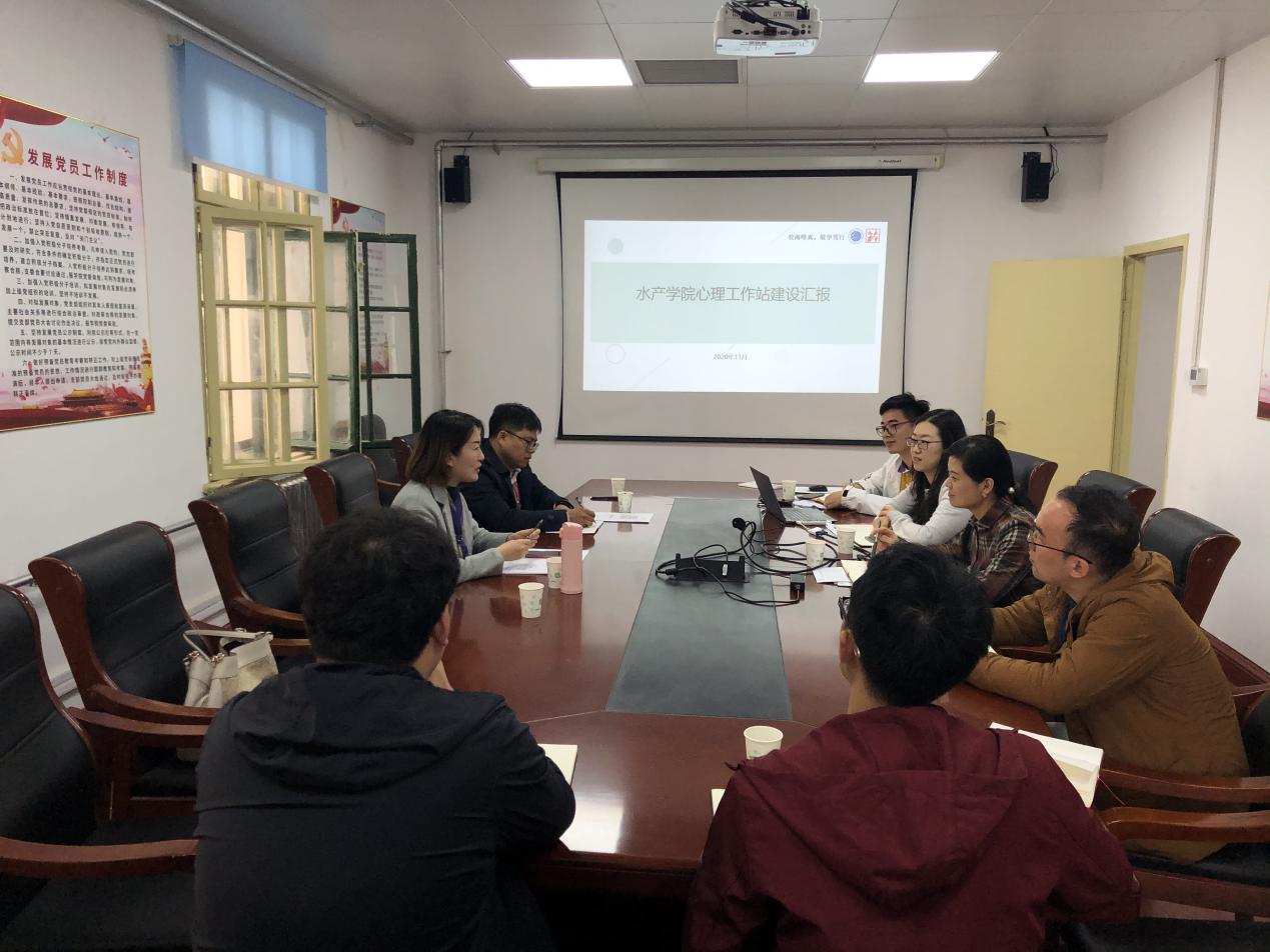 11月5日上午,心理健康教育与咨询中心(以下简称“心理中心”)牟宏玮主任、吴连海老师一行2人就水产学院心理工作站建设情况进行调研和座谈。参与此次座谈会议的还有学院党委副书记王伟莉,团委书记耿雪晨,辅导员刘柱、杨文昭、杨正、彭海、王世晨。