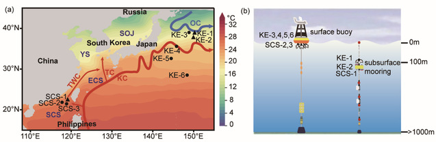 研究首先以线粒体COI基因作为分子标记,揭示了来自9个采样站点的鹅颈藤壶种群的遗传分化模式,接着利用GBS数据加以验证,然后结合采样点的温度数据筛选与温度相关的离散位点,并进行功能注释。研究结果表明,西北太平洋海域的鹅颈藤壶存在三个高度分化的谱系,其中两个谱系分别在黑潮延伸体海域的表层和次表层占主导地位,另外一个谱系则主要分布在南海,该遗传分化模式与环境温度呈现一致性。基于遗传距离估算的分化时间表明三个谱系的分化可追溯到上新世,然而,温度的异质性维持了如今我们所观察到的遗传格局。尤其是在黑潮延伸体海域不同水层存在的遗传分化的差异甚至大于相距千里的表层种群之间的遗传差异,表明小尺度的垂直方向上的热异质性也是维持远洋物种遗传分化模式的重要因素。