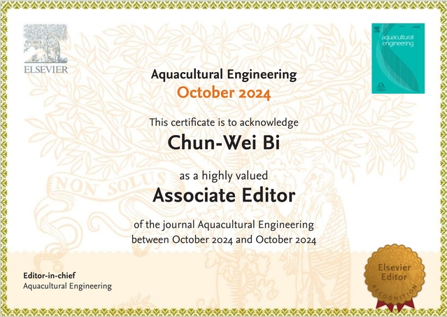 近日,水产学院毕春伟教授受邀担任Elsevier国际期刊Aquacultural Engineering副主编(Associate Editor)。