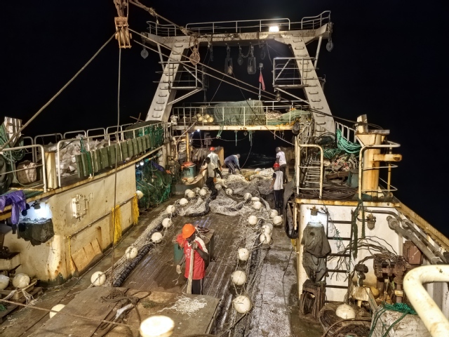 2024年11月,山东荣成渔业装备科技小院首席专家黄六一教授、驻院研究生蓝恭海(2022级捕捞学博士研究生)与山东省好运通网具科技有限公司张孝先董事长经过17天远洋艰苦作业,在中水集团远洋股份有限公司驻几内亚比绍代表处精心配合下,在几内亚比绍顺利完成了中国农业发展集团有限公司重大研发项目《UHMWPE裂膜纤维新材料在软体鱼底拖网上的应用》的海上试验。试验期间,中国农业发展集团有限公司曹恒真副总经理、中水集团远洋股份有限公司拉斯办远洋二部张学文主任亲临代表处进行了指导。该项目目标是应用UHMWPE(超高分子量聚乙烯)裂膜纤维新材料,替代现用六片式软体鱼底拖网的普通聚乙烯材料,并设计新型两片式软体鱼底拖网,提高网具生产效率和使用寿命,以提升企业生产效益。