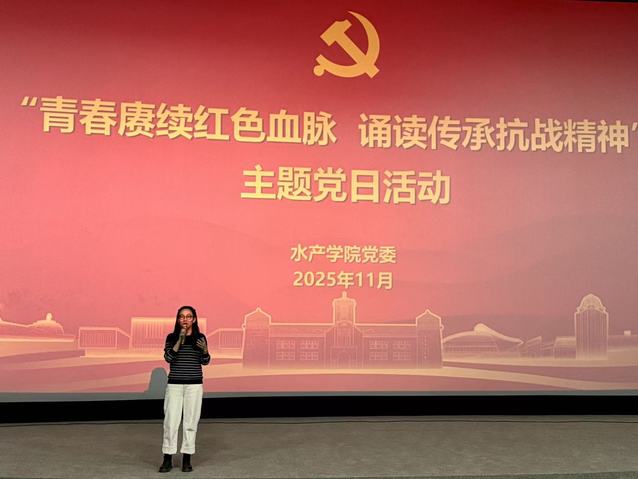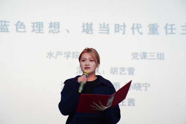 观影后,19名入党积极分子围绕“以青春之名,续抗战荣光”“逐梦深蓝心向党,青春奋进正当时”等主题展开演讲与诵读,用声音诠释那份跨越时空的忠诚与理想。“星星之火,可以燎原,拳拳赤心,光耀山河”“碧海为卷,青春作笔,把论文写在万顷波涛之上”,学生们既在深情的诵读中重温了红色初心,也在激昂的演讲里感悟蓝色信念。一句句铿锵誓言、一幕幕情景再现,让红色初心与蓝色梦想同频共振,共同汇成了新时代水产青年最绚丽的青春底色。