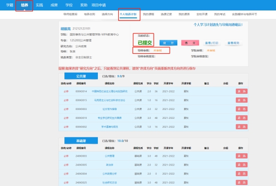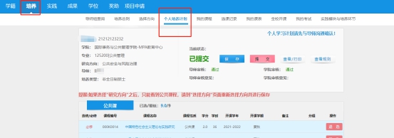 注意:此步骤请在6月29日前完成,6月29日中心统一进行培养计划审核,审核完毕后方可进行选课。