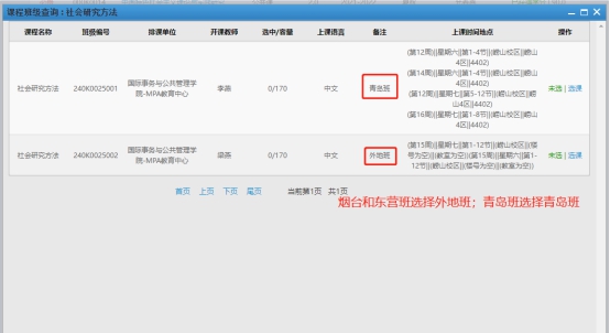 3. 在青岛上课的同学请选择青岛班,不在青岛上课的同学请选择外地班(见下图)